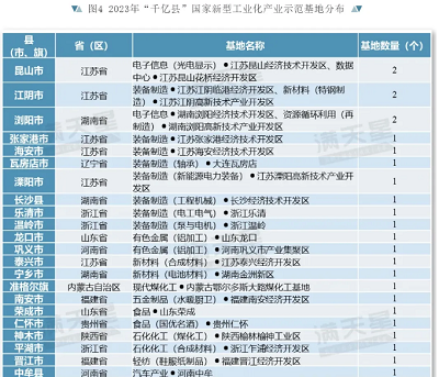 数据显示,截至2023年,累计认定的位于“千亿县”的国家新型工业化产业示范基地共37个,占县域基地总数的三分之一,全国基地总数8.3%。其中,昆山市、江阴市、浏阳市各有2个国家新型工业化产业示范基地。