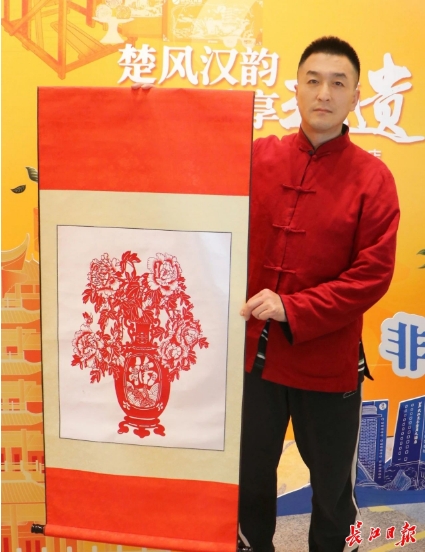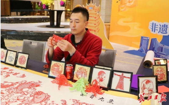 他表示要将武汉剪纸送到社区、学校、企业和景区等,不遗余力传承武汉剪纸和科普非物质文化遗产。