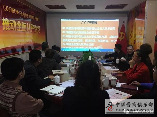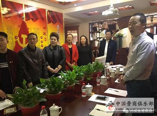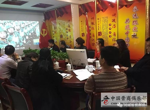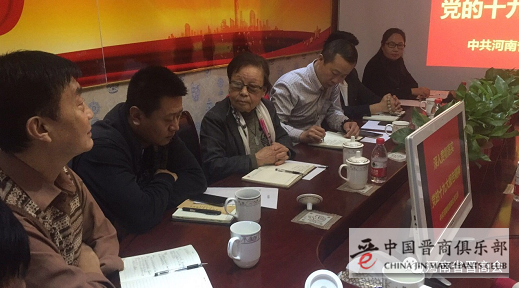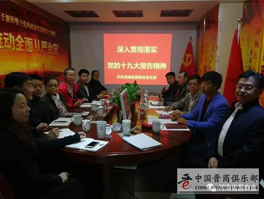 10月25号下午,中共河南省晋商会(中国晋商俱乐部联合发起机构)党支部召开了以“学习贯彻党的十九大会议精神”为主题的党课。党支部书记郭启文、组织委员韩建华、宣传委员尚亚江、纪律委员张俊平与支部全体党员同志参加了此次会议。会议由组织委员韩建华主持。