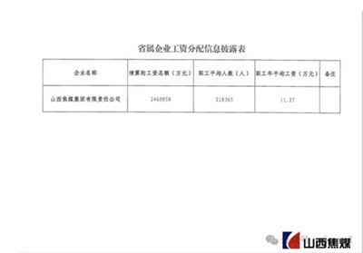山西焦煤集团也发布了省属企业工资分配信息披露表,其中职工年平均工资为11.27万元。
