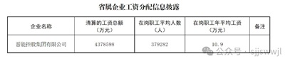 晋能控股集团披露的在岗职工年平均工资为10.9万元。