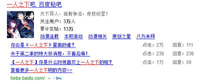 粉丝成立了专门的“一人之下吧”作为同好之间交流的基地,目前发帖数已超过13万: