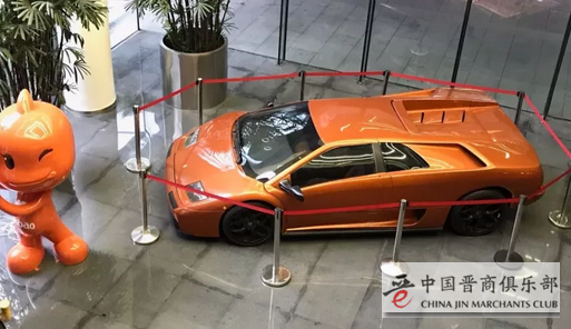 ▲ 阿里内部鼓励员工大胆“搞事情”,大厅展示的兰博基尼由员工组装而成,零件全部来自淘宝