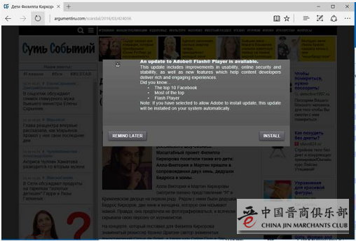 警惕伪造的Adobe Flash Player更新的假消息,及时升级杀毒软件。