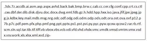 一旦安装中毒后,病毒就会加密含以下扩展名的文件:
