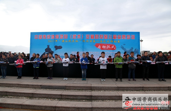 开幕式上,中国传统体育项目(武术)定襄县贫困儿童免费培训计划同步启动,并为参训贫困儿童捐赠了武术表演服和武术器械。据了解,该计划将免费为部分8至10岁建档立卡贫困儿童长期培训,免费为部分18至21岁建档立卡贫困户青年短期集训,并在全市武馆安置助教、陪练等工作岗位,努力落实“精准扶贫,武术同行”计划。