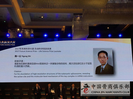 清华大学施一公因其在解析真核信使RNA剪接体这一关键复合物的结构,揭示活性部位及分子层面机理的重大贡献摘得“生命科学奖”。