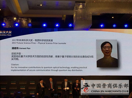 中国科学技术大学潘建伟凭借其在在量子光学技术方面的创造性贡献,使基于量子密钥分发的安全通信成为现实可能获得“物质科学奖”。