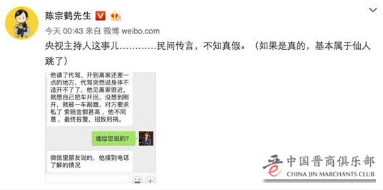 今日,财经及心理学专栏作者陈宗鹤先生在网上发文爆料称郎永淳被仙人跳了,“央视主持人这事儿…………民间传言,不知真假。(如果是真的,基本属于仙人跳了)”。