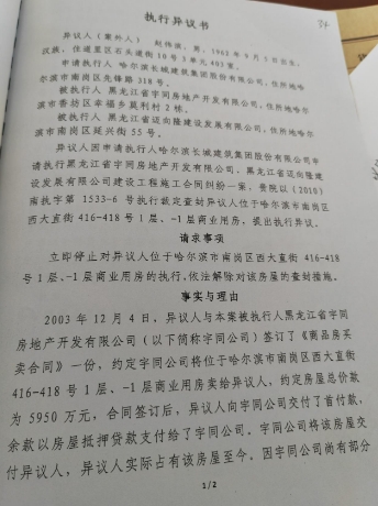 李晶表示,她曾于2016年1月22日向南岗区人民法院也提出过执行异议,但因为请求不符合相关规定,并未得到支持。