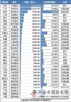 贵州的靓丽市值与贵州茅台表现密不可分。