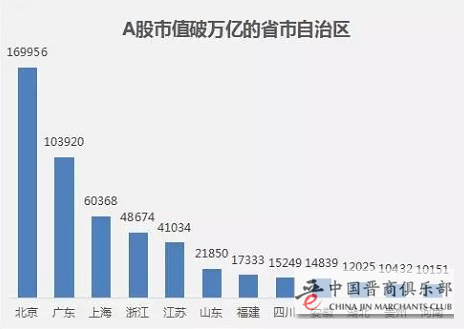 而目前A股市值突破万亿的省市有12个,其中北京16.996万亿,广东10.39万亿,两地区市值合计达27.39万亿,占A股总市值的43.8%。