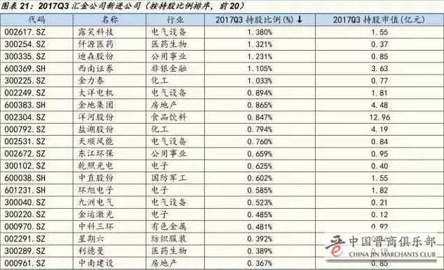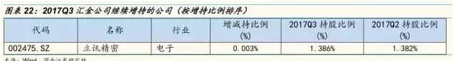 2017Q3汇金公司继续增持的公司只有立讯精密。