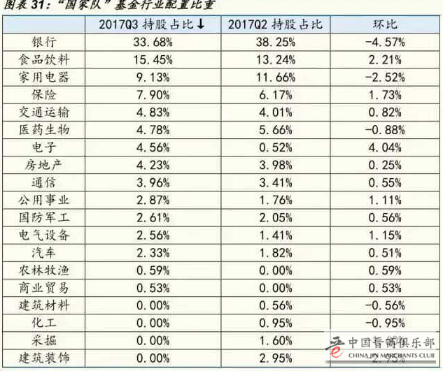 从行业配置上看,“国家队”基金偏好大金融(银行、保险)、消费(食品饮料、家电)