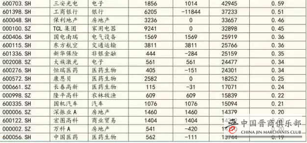 具体看所有增减持情况,三季度证金公司继续增持的公司有73家,按增持比例排序,排在前20的公司为: