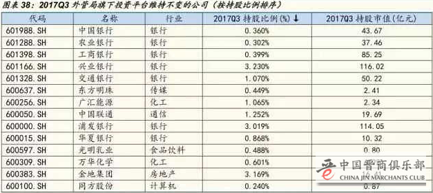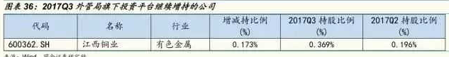 由此,经过“增减持”之后,2017Q3外管局旗下投资平台持股比例较大的18家公司分别为: