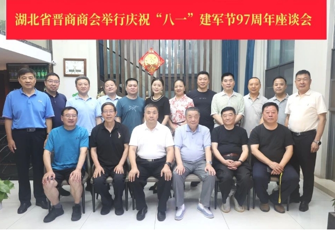 7月26日,湖北省晋商商会(晋商俱乐部联合发起机构)举行山西籍军队退休和军转干部“庆八一、谏良言、谋发展”座谈会,商会会长任志坚、常务副会长卫永飞、弓爱东,秘书长刘伟、执行秘书长王群明,会员温西亭等参加。座谈会由秘书长刘伟主持。