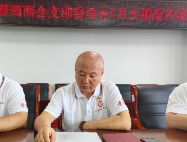 2024年7月29日,淄博市晋商商会(晋商俱乐部联合发起机构)党支部召开学习6月18日习近平对防汛抗旱工作作出重要指示及中共中央组织部印发《关于在防汛救灾抢险中充分发挥基层党组织战斗堡垒作用和广大党员先锋模范作用的通知》。商会党支部书记师志刚、会长李斌、执行会长康磊、党员耿东海,积极分子薛辉、杨鑫,理事晋晖、孟威,会员吉凌峰参加活动。