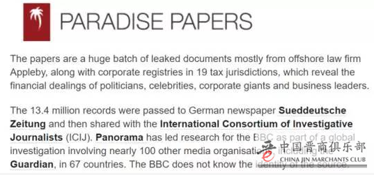 而这份天堂文件,里面除了Appleby,还有来自于新加坡的盛亚信托及全球19个位于加勒比海、太平洋及欧洲的隐蔽逃税天堂注册文件。简直就是一本全球避税指南!消息一出,全世界哗然。