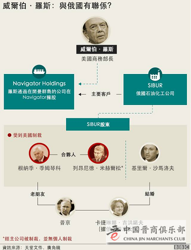 根据《纽约时报》消息,Ross在开曼群岛注册了一间公司,投资过一家叫The Navigator的货运公司。而这家公司的主要客户之一呢,是一家来自俄罗斯的能源公司——Sibur.