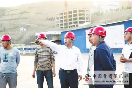 山西六建集团党委书记、董事长杨韶勇(中)在南方某项目工地检查指导。
