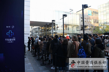 上周末知乎的「不知道诊所」如无意外应该能够预定2017年最火快闪活动席位,因为在寸土寸金的北京三里屯太古里橙色大厅门前,在寒风凛冽的天气里,等待排队入场的人流已经成了这样: