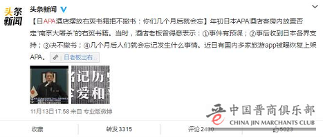 2017年初,日本APA连锁酒店在客房内放置右翼书籍事件在网络上曝光,引发中国民众强烈愤慨,国内旅行社和旅游平台随后全面禁止与APA酒店合作。然而最近网友发现的一件事却让很多人寒心了……