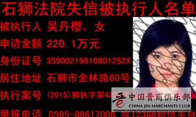 2016年5月,石狮市人民法院曾公布吴丹樱失信信息,欠款标的金额为220.1万元。一年后,吴丹樱涉案标的金额飙升至5.5亿余元。