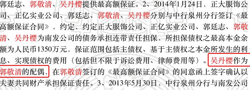 小编发现,自2013年12月至2017年5月,正大服饰涉及了94起法律诉讼,其中绝大部否都是买卖合同纠纷、民间借贷纠纷、金融借款合同纠纷。中信银行股份有限公司泉州分行、交通银行股份有限公司泉州分行等都曾是正大服饰的原告,而被告中,郭敬清和吴丹樱的名字经常同时出现。
