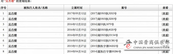 最高人民法院系统显示,吴丹樱先后8次成为失信被执行人。