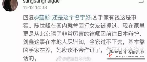有消息指称,原本陈世峰可以接受日本政府指定的辩护律师,也就是说,他可以免费获得律师援助。但是他没有,他现在的辩护律师,是他背后的人,花高额请的私人律师,而且这个律师是专门针对中国人案件进行辩护的。也就是说,他们想给陈世峰,做到最轻的判罚。
