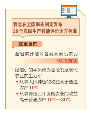 2014年开展农民教育培训工作以来,山西省各级农业农村部门围绕全面支撑粮食安全和重要农产品稳定供给,统筹推进农业经理人、农村创新创业者、乡村治理及农村社会事业发展带头人和种养加能手等六大类开展培训,为推进乡村全面振兴提供了有力人才保障。山西省还在全国率先制定发布20个农民生产技能评价地方标准,建立了涵盖主要农作物种植品种和畜禽养殖品种的技能评价标准体系。截至目前,山西省累计培育各类高素质农民92.5万人,高素质农民培育绩效考核持续排在全国优秀行列。经培训的学员活跃在农业生产经营各领域,成为各地发展现代农业的生力军,从事大田种植的收益高于普通农户10%,从事养殖业和设施农业的收益高于普通农户10%—30%。