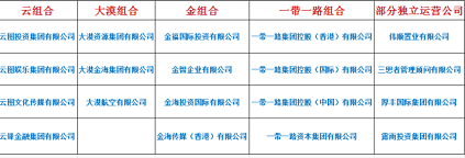 从业务方面来看,这些公司没有实际联系,只是名字联系比较紧密,可划分为“云组合”、“大漠组合”、“金组合”、“一带一路”以及部分独立运营公司。