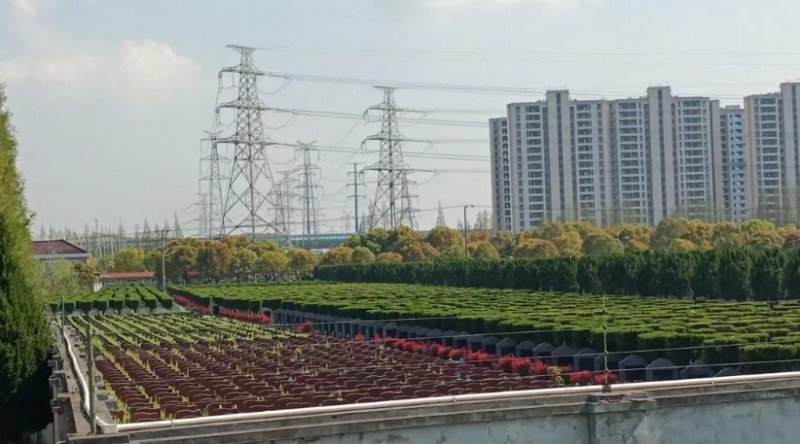 另外一个距离更近的小区是上海望族城,在斜对面,上面这张图就是站在望族城小区的5号楼,也就是距离殡仪馆最近的楼栋拍摄的