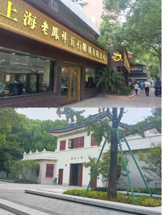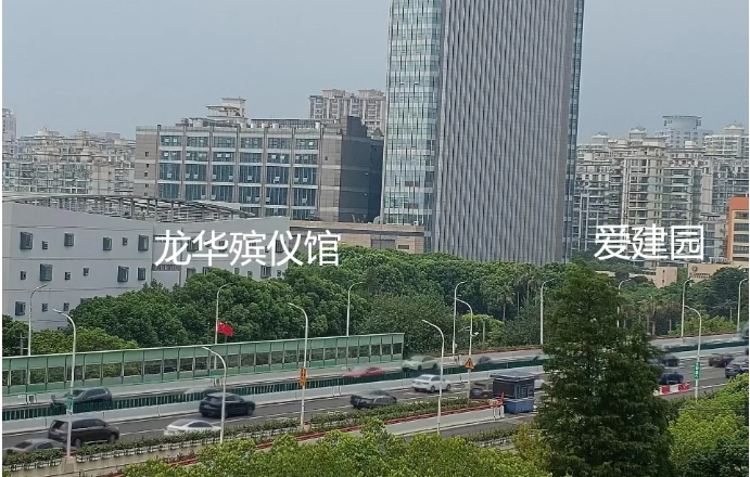 龙华殡仪馆附近1、200米范围内都是老凤祥金楼、航天商业大厦、全季酒店这种商业楼