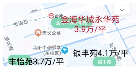 比如说距离天长公墓最近的金海华城永华苑,房价并不是区域内最低的,反而比离公墓更远一点的丰怡苑还高2千/平
