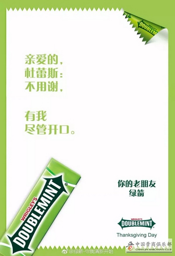 首先,上午10点的时候,杜蕾斯最先感谢的是绿箭口香糖。