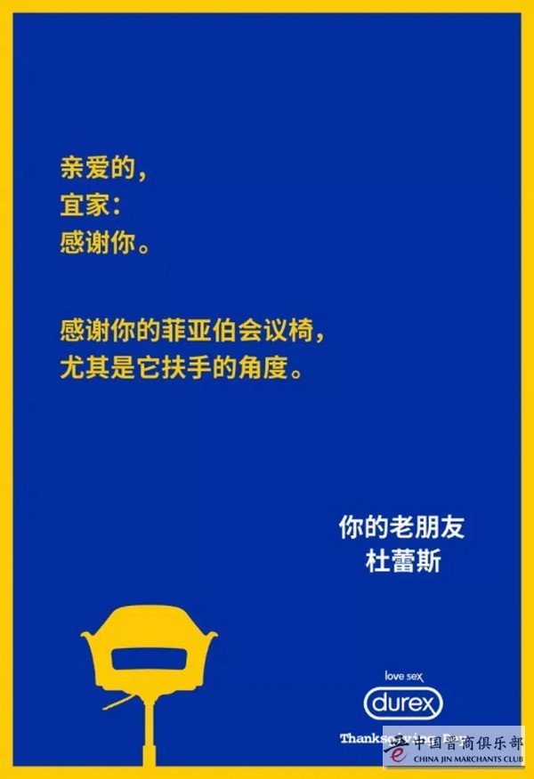 这一段双方的你来我往,很精彩。杜蕾斯直接选中了宜家的一款会议椅,来暗示办公室里的春光。