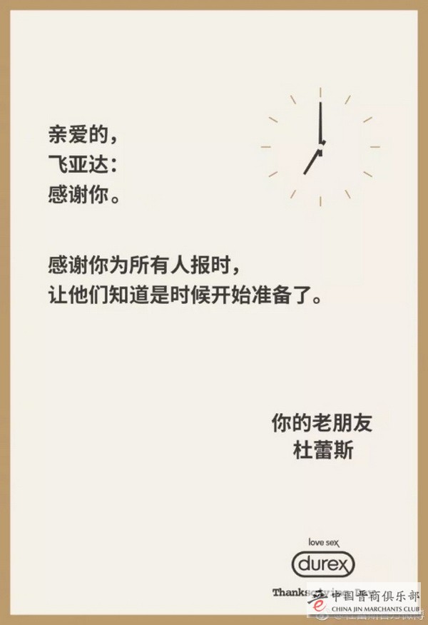19:00的时候,杜蕾斯感谢了飞亚达。