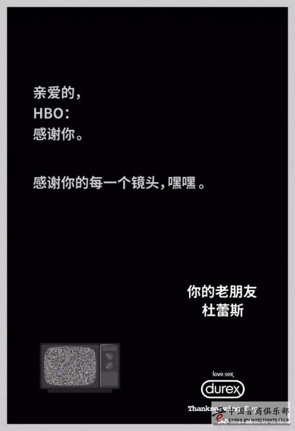 20:01-@杜蕾斯:感谢你的每一个镜头@HBO,这个梗埋得有点深,而且HBO也没有微博,所以如果不看美剧的人不一定能反应过来。