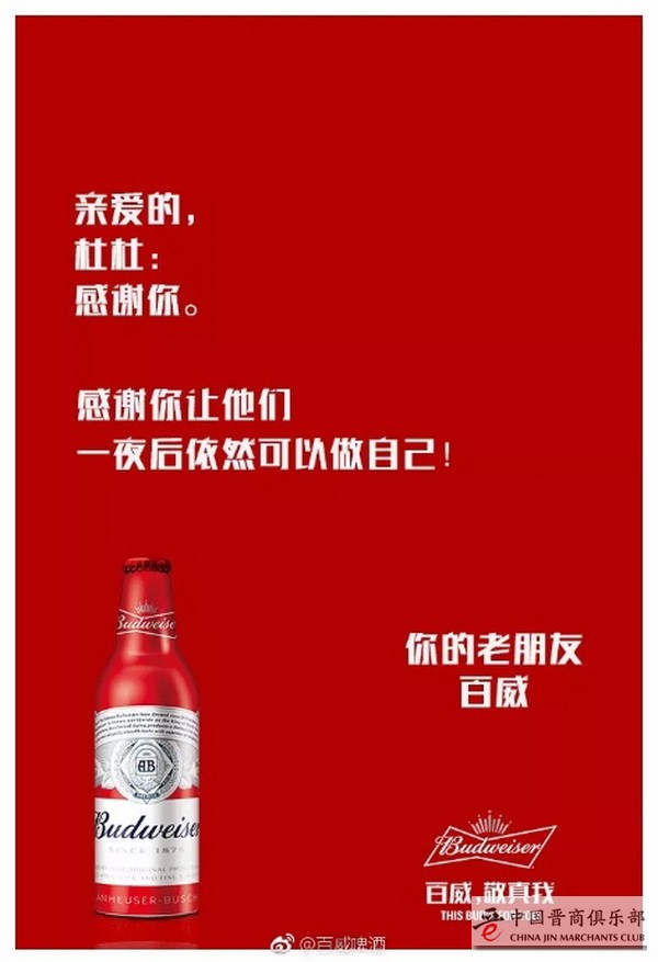 21:01-@杜蕾斯:感谢你,嗝@百威啤酒