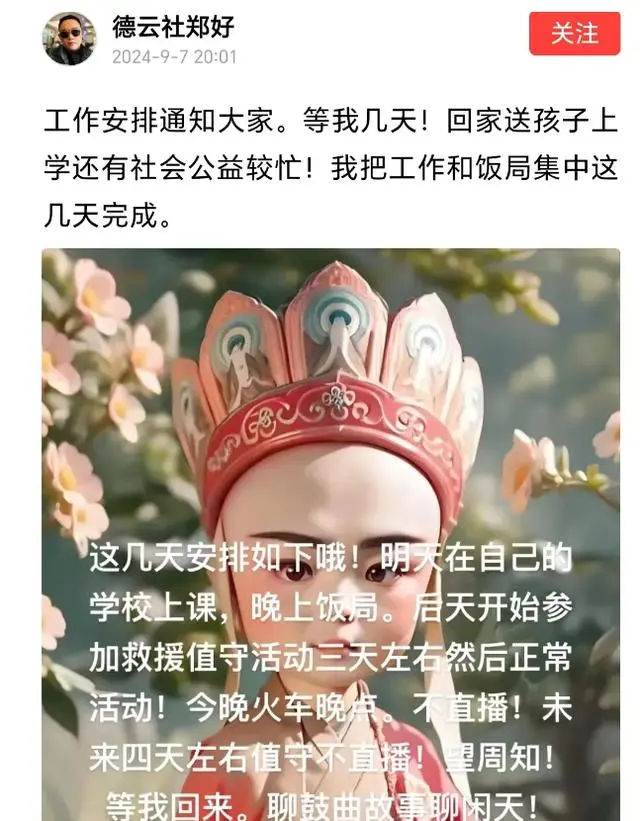 这一次郑好停完演出又暂停直播,明明犯了错误导致德云社被约谈,他依然丝毫不提自己犯下的错误,同样也是为了继续维护人设。