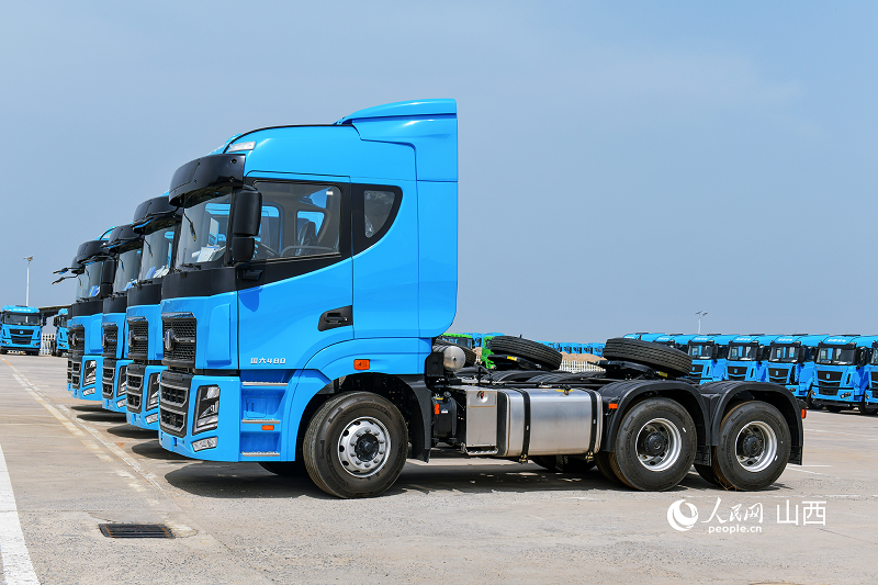 吉利远程晋中生产基地准备发运的醇氢重卡。人民网记者 焦搏文摄
