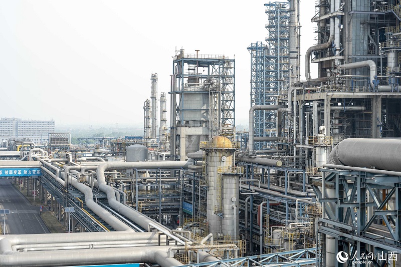 潞安化工集团煤基清洁能源有限公司厂区煤化工设备装置。人民网 卢鹏宇摄