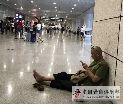 在车站赤脚等车的有钱大叔