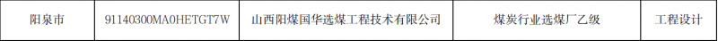 山西省住房和城乡建设厅拟依法撤回山西阳煤国华选煤工程技术有限公司企业相关资质,现予以公示,公示时间为2024年9月19日至2024年9月26日。公示期满后,将依法撤回仍未满足资质标准要求的企业相关资质。