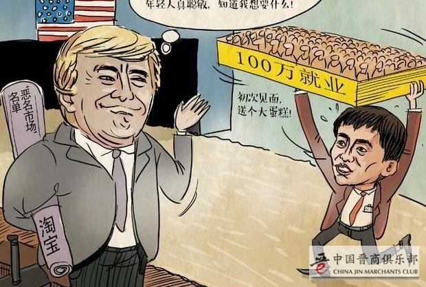 2017年1月,马云与特朗普见面,还向特朗普承诺,帮助特朗普为美国创造100万个就业岗位。在一次盛会上,特邀嘉宾史考特.有幸与马云见面交谈,马云表示对底特律城市的创新活动很有兴趣,也非常喜欢史考特的辣酱。