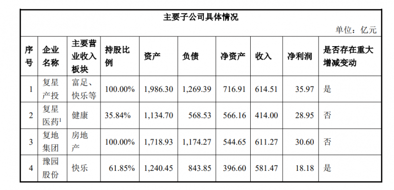 截至2023年末,复星高科主要有4家子公司,分别为:上海复星产业投资有限公司、复星医药、复地(集团)股份有限公司及豫园股份。