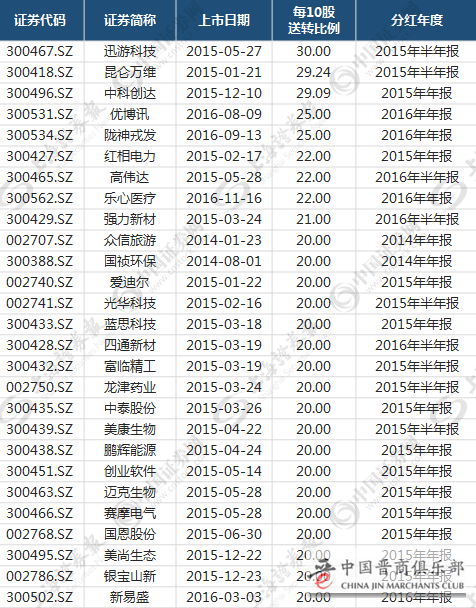 为此,我们统计了在2014年、2015年、2016年上市的中小创个股,在上市后一年内的高送转情况(见下表)。