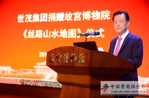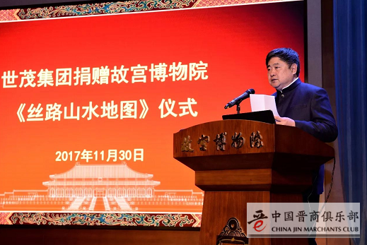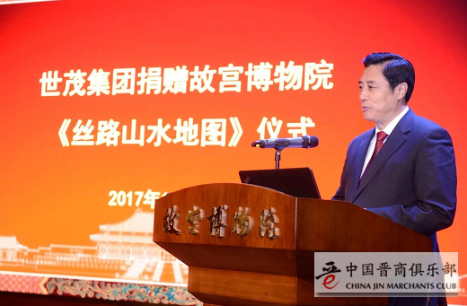 2017年11月30日,世茂集团董事局主席许荣茂先生向故宫博物院捐赠《丝路山水地图》的捐赠仪式在故宫博物院报告厅举行。这幅地图由许荣茂先生斥资1.33亿元购回,并无偿捐赠故宫博物院。